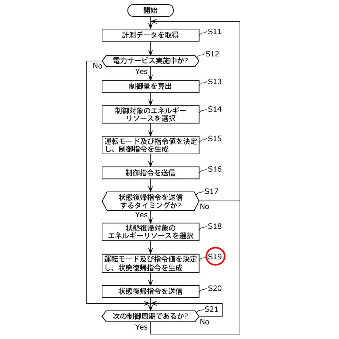 核となるプロセスは、電力サービスの終了時に実行される状態復帰指令生成ステップ(S19)です。